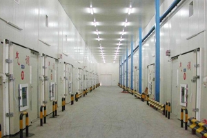 氣調(diào)庫又稱氣調(diào)貯藏是當(dāng)今最先進的果蔬保鮮貯藏方法。它是在冷藏的基礎(chǔ)上,增加氣體成分調(diào)節(jié),通過對貯藏環(huán)境中溫度、濕度、二氧化碳、氧氣濃度和乙烯濃度等條件的控制,抑制果蔬呼吸作用,延緩其新陳代謝過程,更好地保持果蔬新鮮度和商品性,延長果蔬貯藏期和保鮮期(銷售貨架期)。通常氣調(diào)貯藏比普通冷藏可延長貯藏期0.5-1倍;氣調(diào)庫內(nèi)儲藏的果蔬,出庫后先從"休眠"狀態(tài)"蘇醒",這使果蔬出庫后保鮮期(銷售貨架期)可延長21~28天,是普通冷藏庫的3~4倍。氣調(diào)庫一般由氣密庫體、氣調(diào)系統(tǒng)、制冷系統(tǒng)、加濕系統(tǒng)、壓力平衡系統(tǒng)以及溫度、濕度、O2、CO2,氣體自動檢測控制系統(tǒng)構(gòu)成。