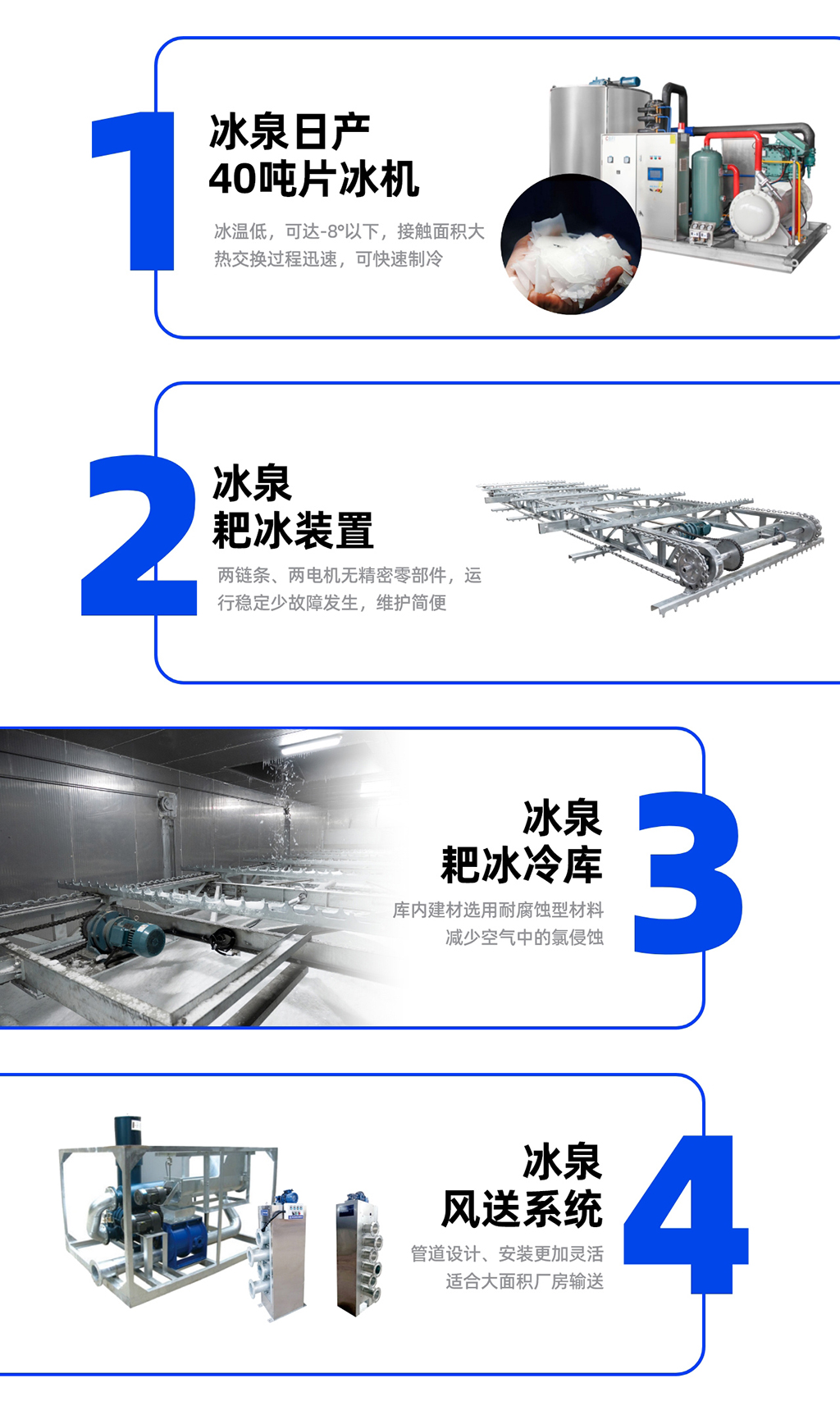 耙冰系統(tǒng)一般是與制冰設(shè)備配套使用,安裝在儲冰冷庫內(nèi)的,它有效的利用空間進(jìn)行來儲冰。當(dāng)在短時間內(nèi)需要大量用冰的情況下,儲冰冷庫可以自動地輸送冰,以滿足用冰需求,儲冰運(yùn)轉(zhuǎn)過程中,耙冰機(jī)構(gòu)將制冰機(jī)生產(chǎn)的冰在冰庫水平范圍內(nèi)耙平,達(dá)到冰庫存儲的上極限后,控制系統(tǒng)自動停止制冰機(jī)的運(yùn)行。當(dāng)冰庫內(nèi)的冰位較低時,又將自動啟動制冰機(jī)。