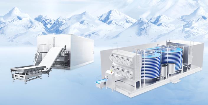 2.速凍設(shè)備:提供多種速凍機(jī),如螺旋速凍機(jī)、隧道式速凍機(jī)、單螺旋速凍機(jī)、流態(tài)化速凍機(jī)等。這些設(shè)備專為快速冷凍食品設(shè)計(jì),適用于肉類、海鮮、蔬菜等食品的快速凍結(jié),確保食品質(zhì)量并延長保質(zhì)期。