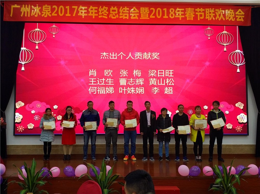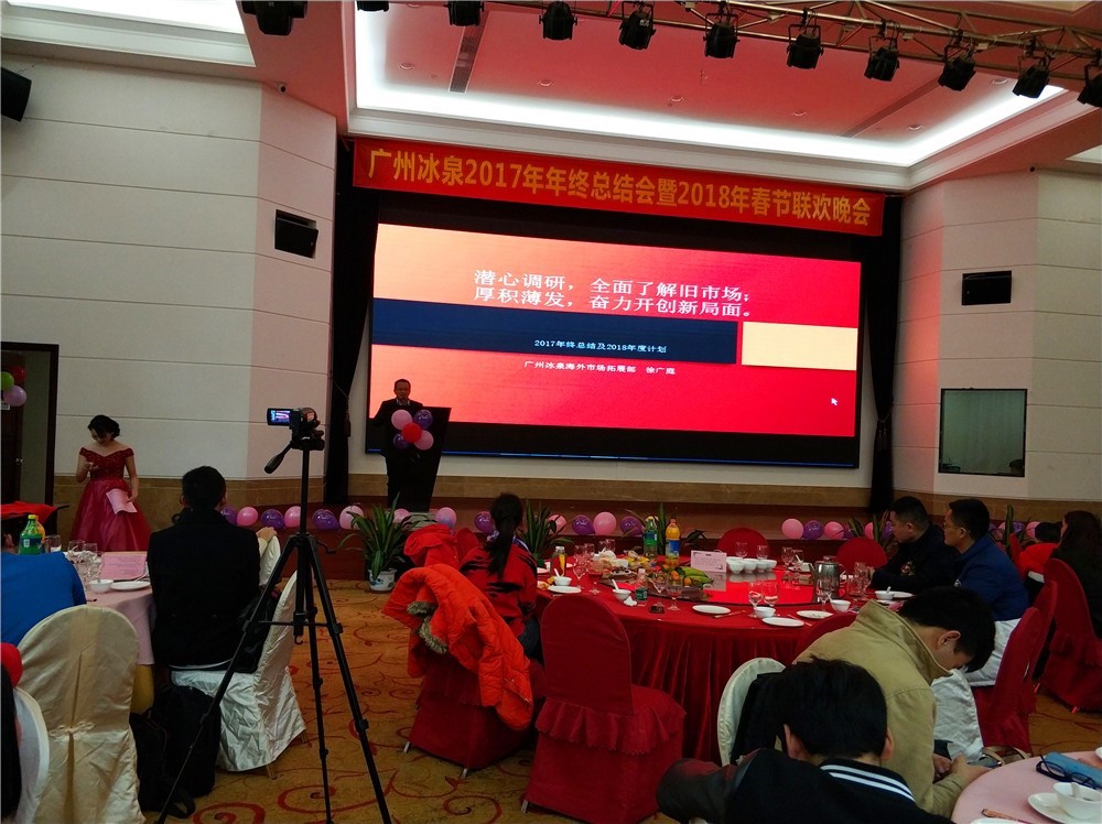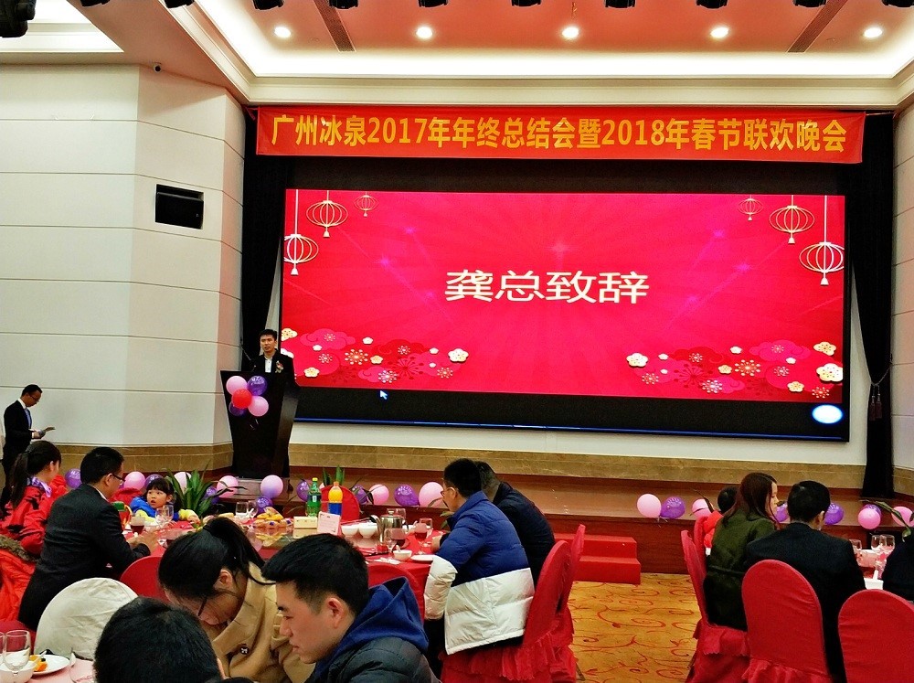 2018年2月6日下午兩點(diǎn),廣州冰泉2017年年終總結(jié)會(huì)暨2018年春節(jié)聯(lián)歡晚會(huì)在位于廣州番禺區(qū)興南大道的南方毅源大酒店花園廳順利舉行。