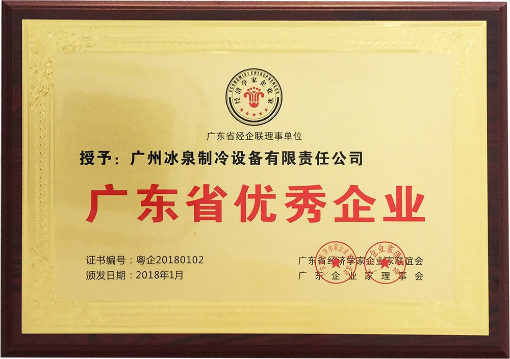與此同時,為了表彰冰泉制冷對環(huán)保制冷領(lǐng)域的卓越貢獻,廣東省經(jīng)濟學(xué)家企業(yè)家聯(lián)誼會聯(lián)合廣東企業(yè)家理事會為公司頒發(fā)了“廣東省優(yōu)秀企業(yè)”的獎狀。