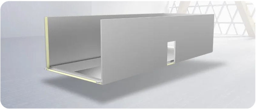 雙面不銹鋼PIR庫板,密度高保溫性能好。模塊化地臺,全不銹鋼連續(xù)焊接式底板,不滲水,無沉降。