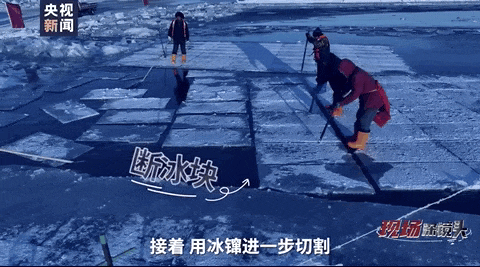 哈爾濱冰雪大世界的的冰雕用冰塊基本來自于12月份冰天雪地的松花江江面。當(dāng)松花江上的冰層厚度達到0.3米時,長約1個月的采冰黃金期便開始了。